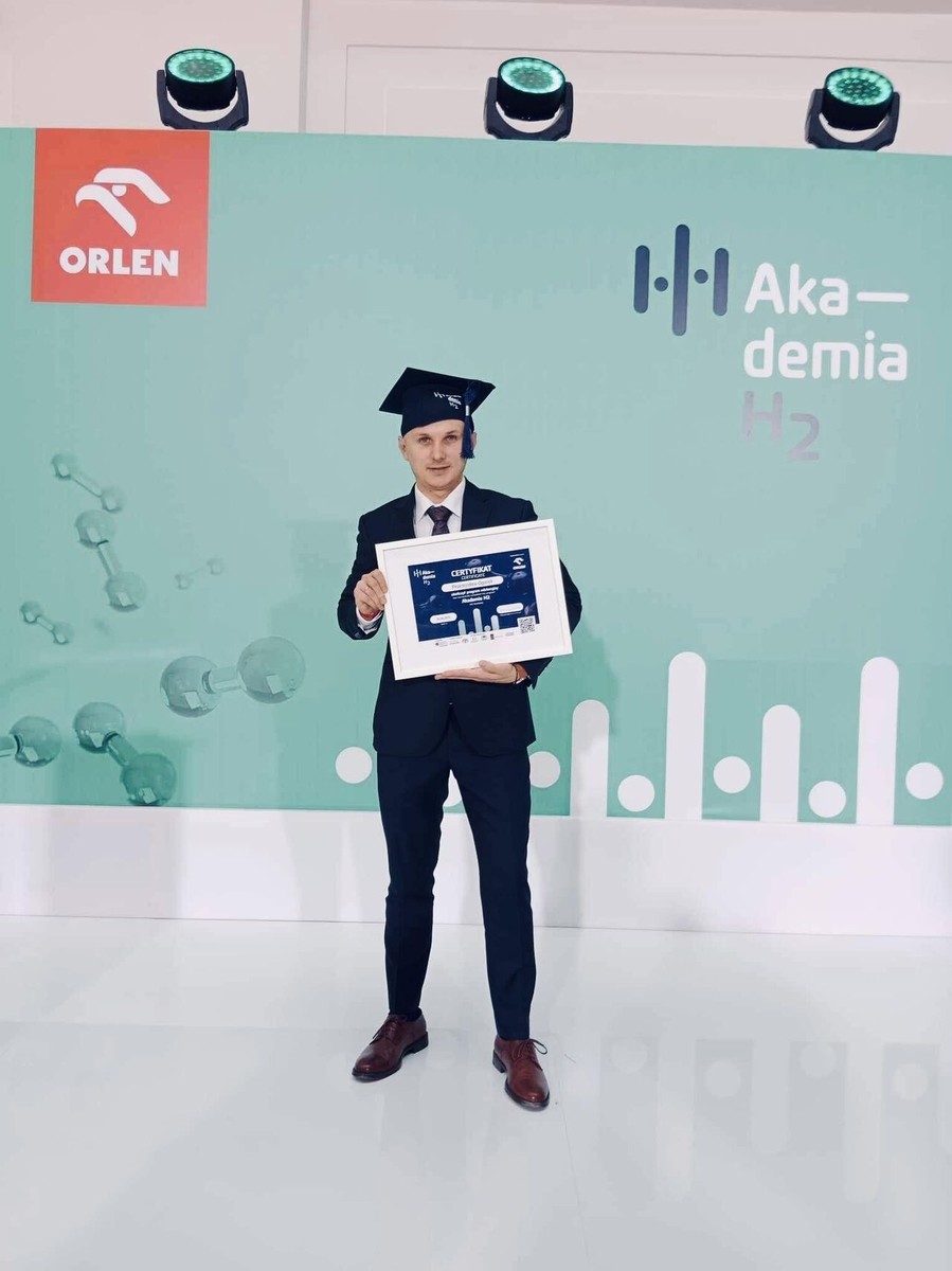 26 czerwca 2023 roku, pracownik KIiGW - mgr Przemysław Ogarek odebrał w siedzibie ORLEN certyfikat ukończenia Akademii Wodorowej.