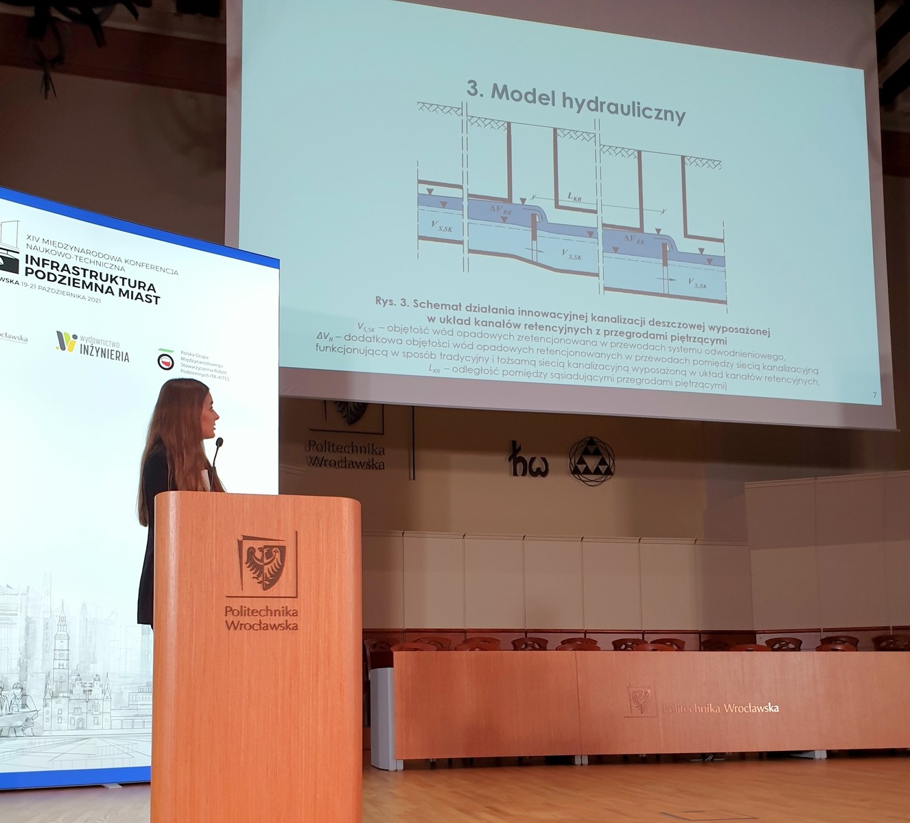 I właśnie z tej tematyki mgr inż. Patrycja Stanowska przedstawiła zespołowy referat w drugim dniu obrad. Jego treści jako artykuł zespołowy z pracownikami Katedry Infrastruktury i Gospodarki Wodnej (P. Stanowska, J. Dziopak, D. Słyś i M. Starzec) pt. „An innovative rainwater system as an effective alternative for cubature retention facilities” uzyskał pozytywne recenzje i jeszcze w tym roku jest planowane jego opublikowanie w języku angielskim w specjalnym wydaniu periodyku Studia Geotechnica et Mechanica (70 pkt). Konferencję zorganizowały Politechnika Wrocławska wraz z Wydawnictwem INŻYNIERIA z Krakowa przy wsparciu International Tunnelling Association. Program konferencji i informacje o uczestnikach, komitecie naukowym, firmach biorących udział, i sponsorach są dostępne pod linkiem: